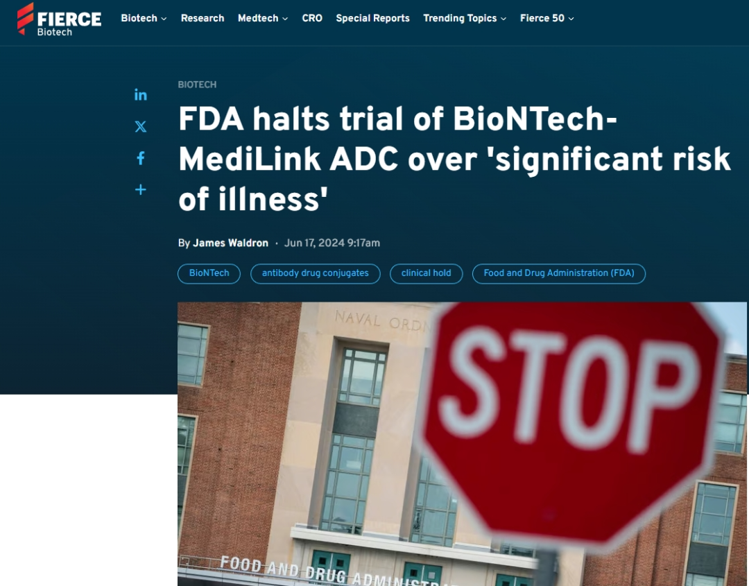 2024年,FDA因重大安全性风险暂停了BioNTech HER3 ADC的Ⅰ期临床试验,其高剂量组出现的致死性感染与显著的血液学毒性相关[1]。